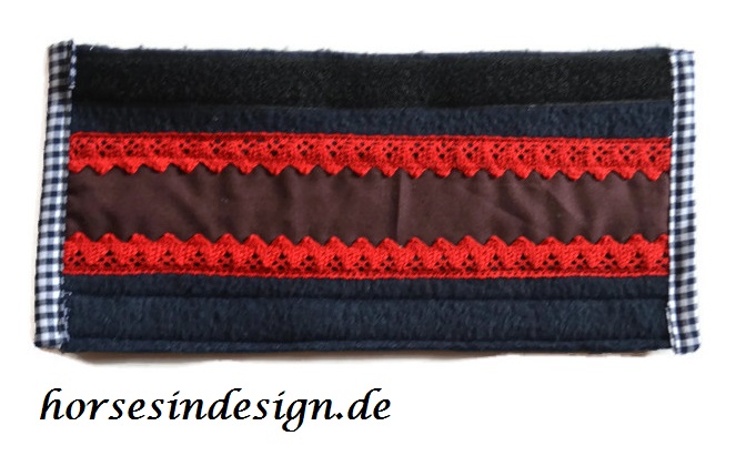 Nasenschoner dekorieren u. a. das Halfter. Es hat eine Breite von ca. 20 cm.