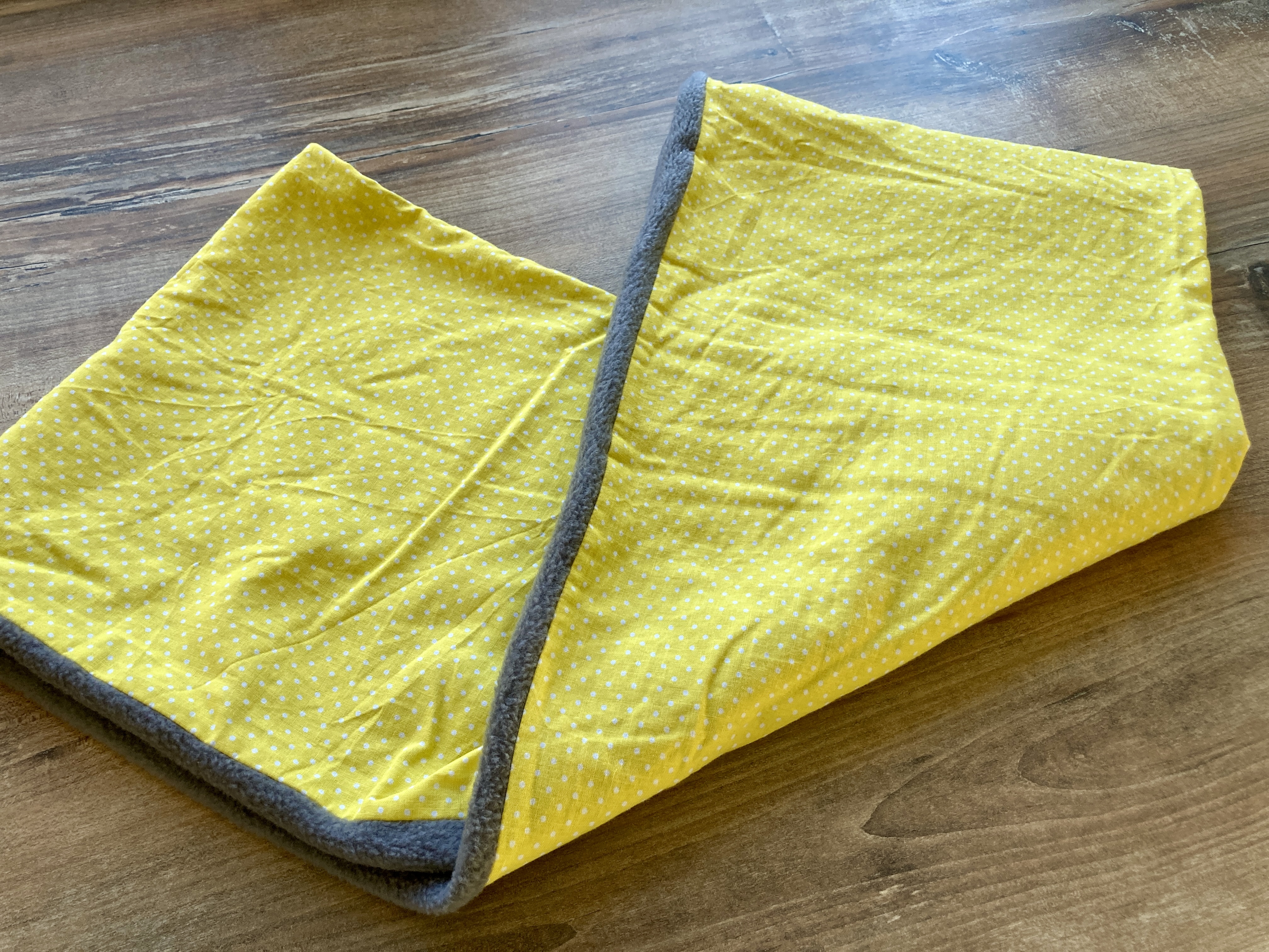 Rundschal - Baumwolle, Fleece - handmade- Unikat - gelb, weiß, grau, - Punkte